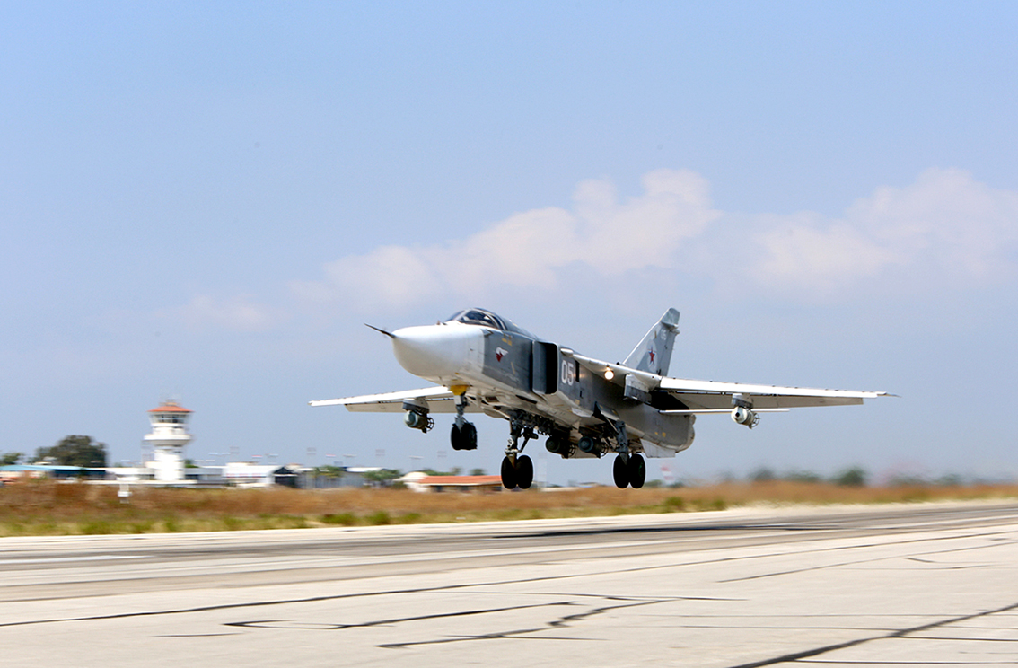 The Russian jets bombed 24 marks, including command posts, ammunition stores and anti-aircraft artillery in Syria on Tuesday.